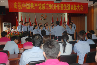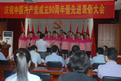 會(huì)后,進(jìn)行了紀(jì)念建黨90周年員工紅歌演唱會(huì),來自各部門的5個(gè)合唱隊(duì)、12個(gè)獨(dú)唱和1個(gè)小品進(jìn)行了激烈的角逐,經(jīng)過評(píng)審團(tuán)公平公正的評(píng)分,最后評(píng)出了合唱和獨(dú)唱、小品前三等獎(jiǎng),與會(huì)領(lǐng)導(dǎo)向獲獎(jiǎng)團(tuán)隊(duì)和個(gè)人頒發(fā)了證書并合影留念。