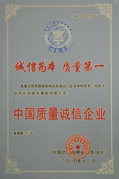 會上,杭州市出入境檢驗檢疫協(xié)會對獲得2010年度杭州地區(qū)“中國質(zhì)量誠信企業(yè)”的10家單位進行了表彰并頒發(fā)了獎牌。浙江檢驗檢疫協(xié)會會長張榮生在會上對受表彰的“中國質(zhì)量誠信企業(yè)”表示祝賀并提出新的要求。